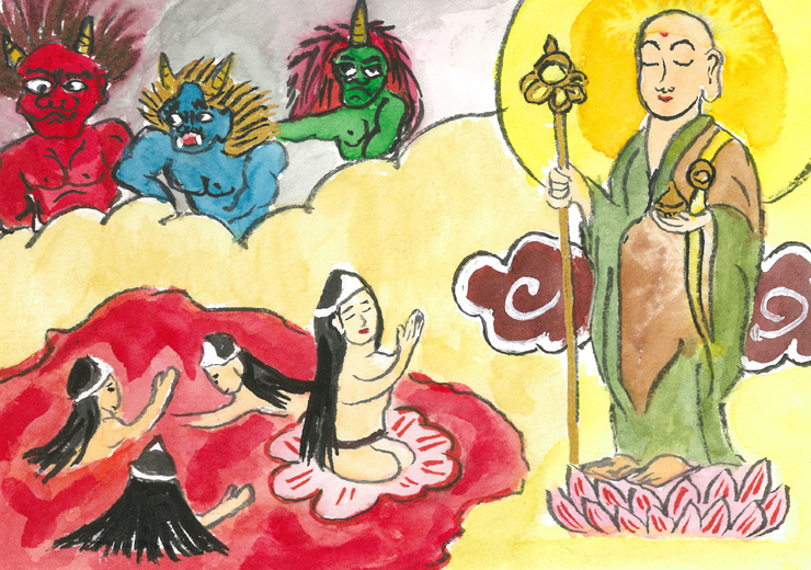 すると苦しんでいるお姫さまの前にお地蔵さまが現れたのです。