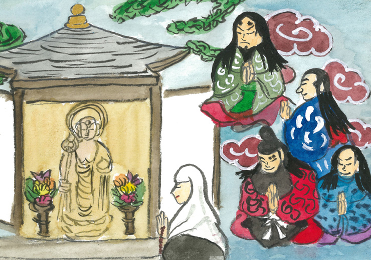 こうして生き返えることができたお姫さまは、ますますお地蔵さまを大切にして、名前を如蔵尼と改めました。如蔵尼とは、お地蔵さまのように慈悲深い人という意味です。