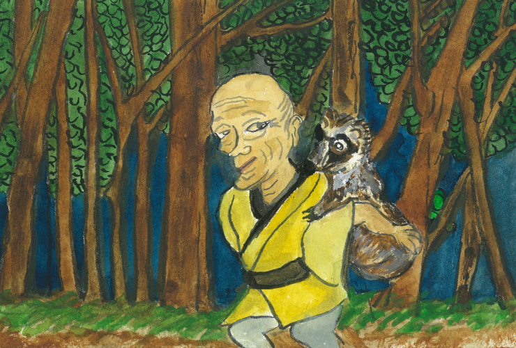 「はいよ」とじぃさまはムジナをおぶって、お屋しきまで走っただと。