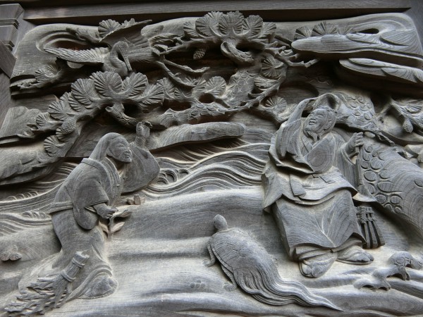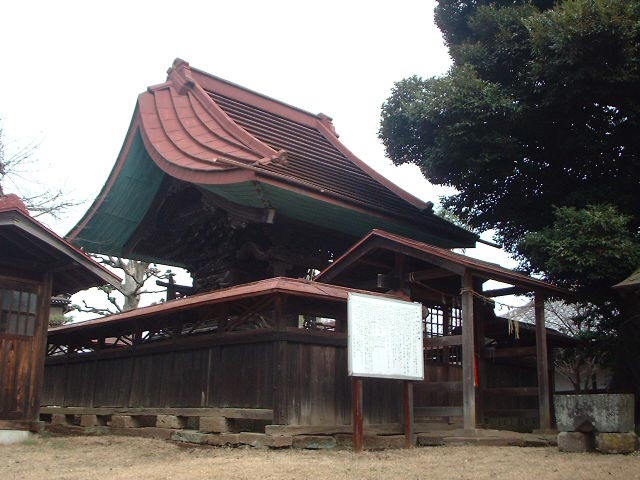 (将門神社)平将門を祭神とした全国でも珍しい神社です。本殿は1859年の再建で、基壇の部分に「放れ駒」や「隻眼の人物像」などの精巧な彫刻が施されています。